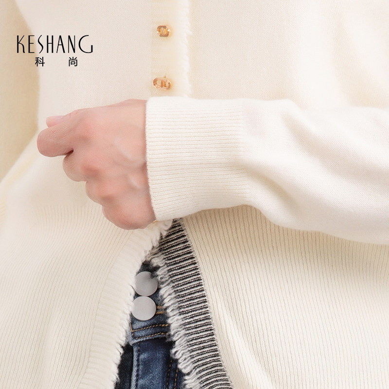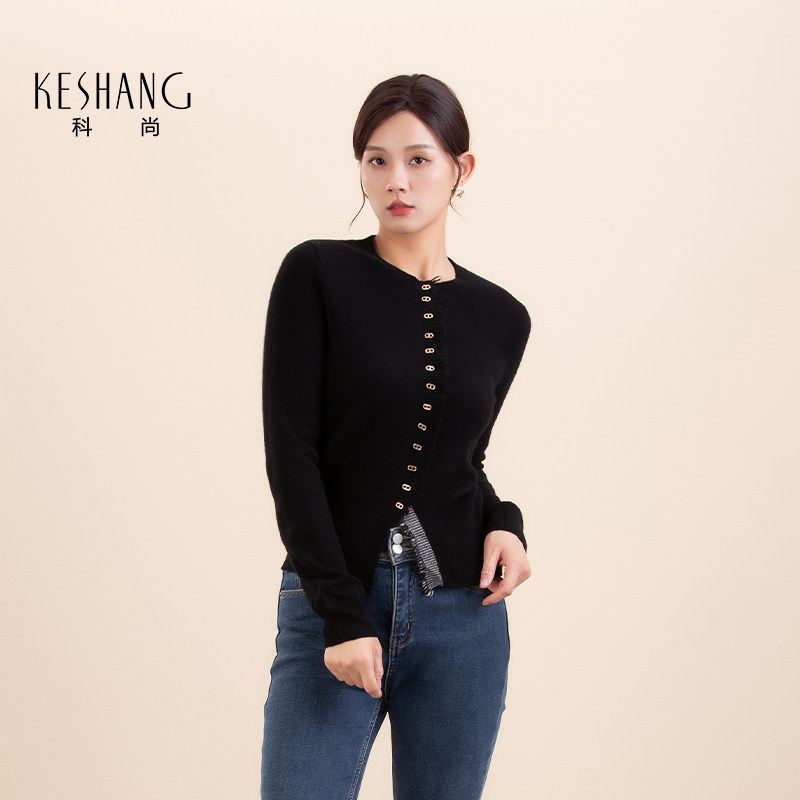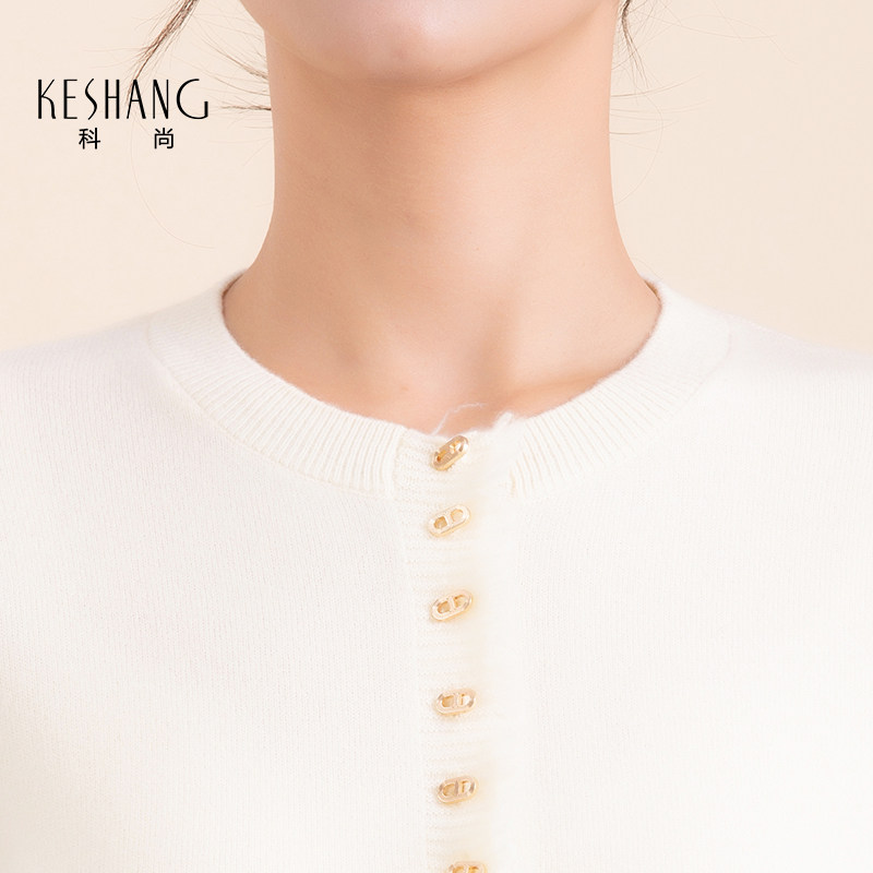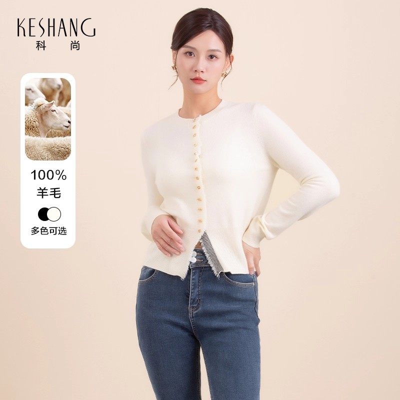 科尚100%羊毛衫女圆领2025冬季新款长袖打底衫舒适淑女开衫针织衫
