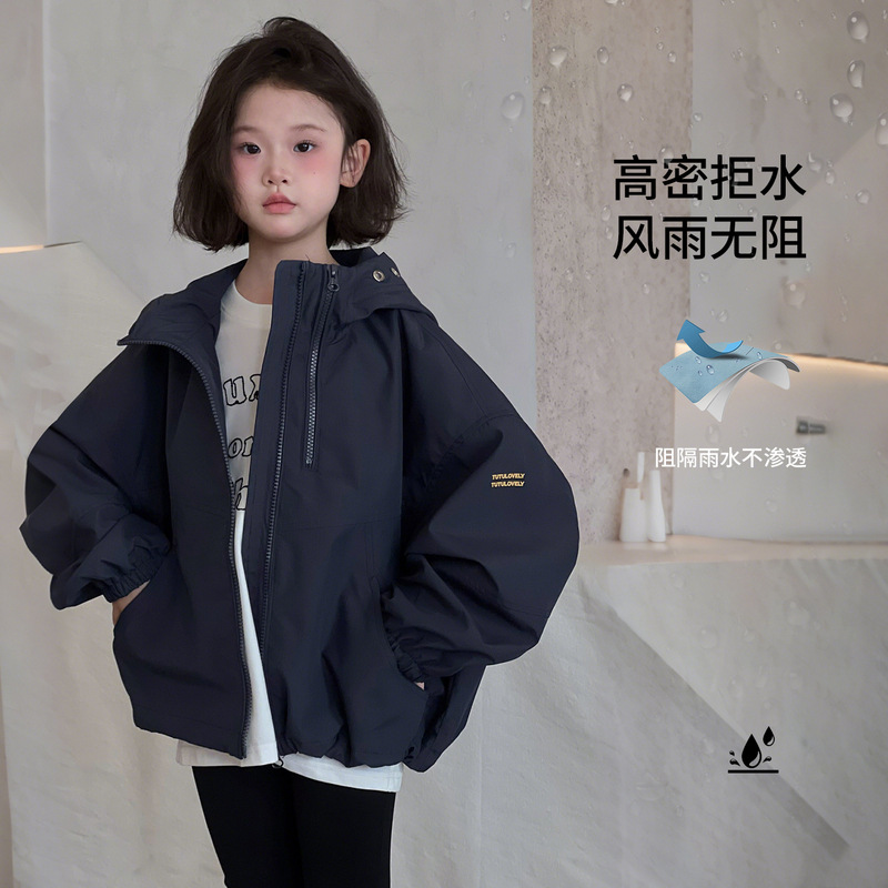 女童冲锋衣儿童外套2025新款秋装防风防水软壳连帽春秋漂亮衣服