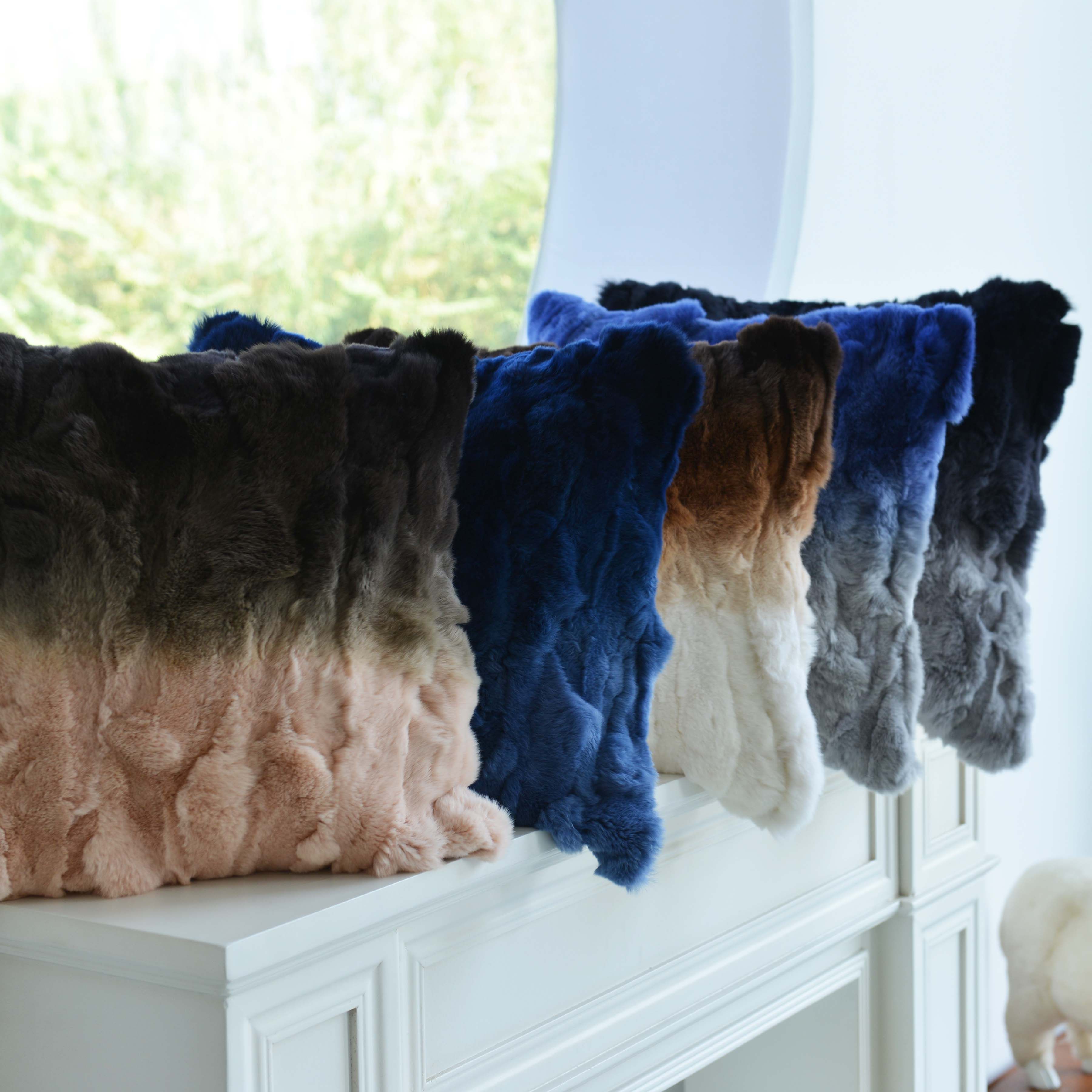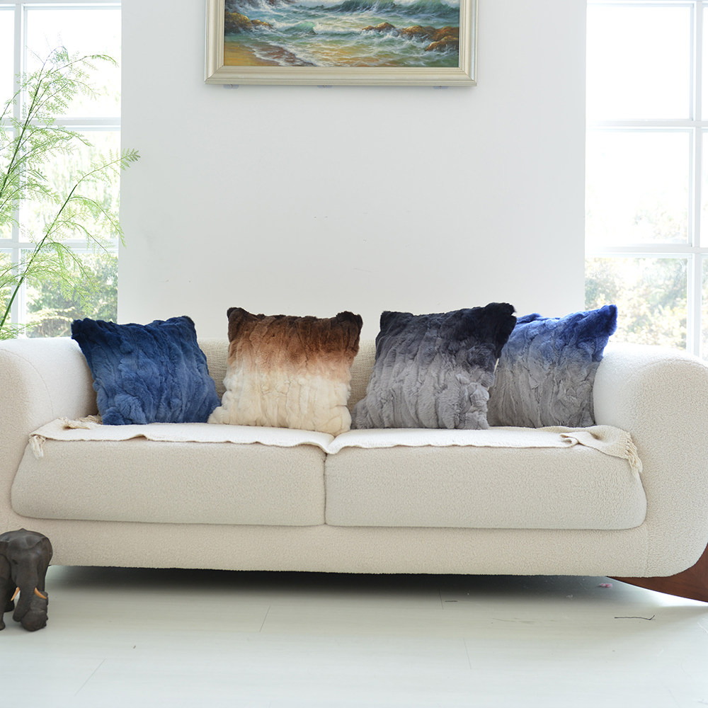 渐变色高档獭兔毛轻奢抱枕靠垫