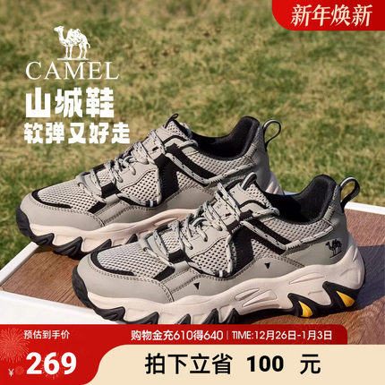 【骆驼山城】2025秋冬款户外登山鞋男防滑透气网面徒步休闲运动鞋
