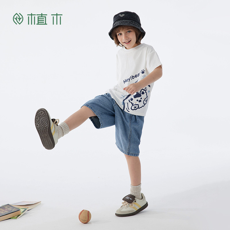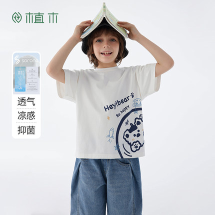植木童装原织凉感抗菌棉质男童T恤中大童2025夏装新款儿童短袖潮