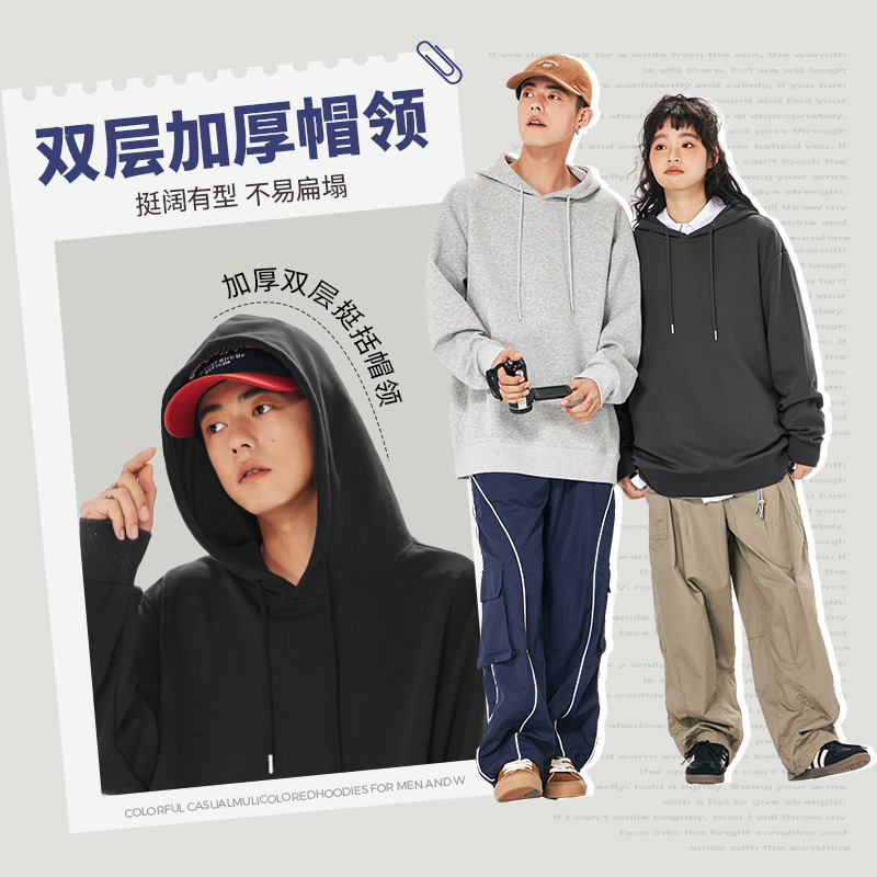 GV真维斯潮牌卫衣男春秋季美式休闲宽松大码重磅男士连帽外套潮B