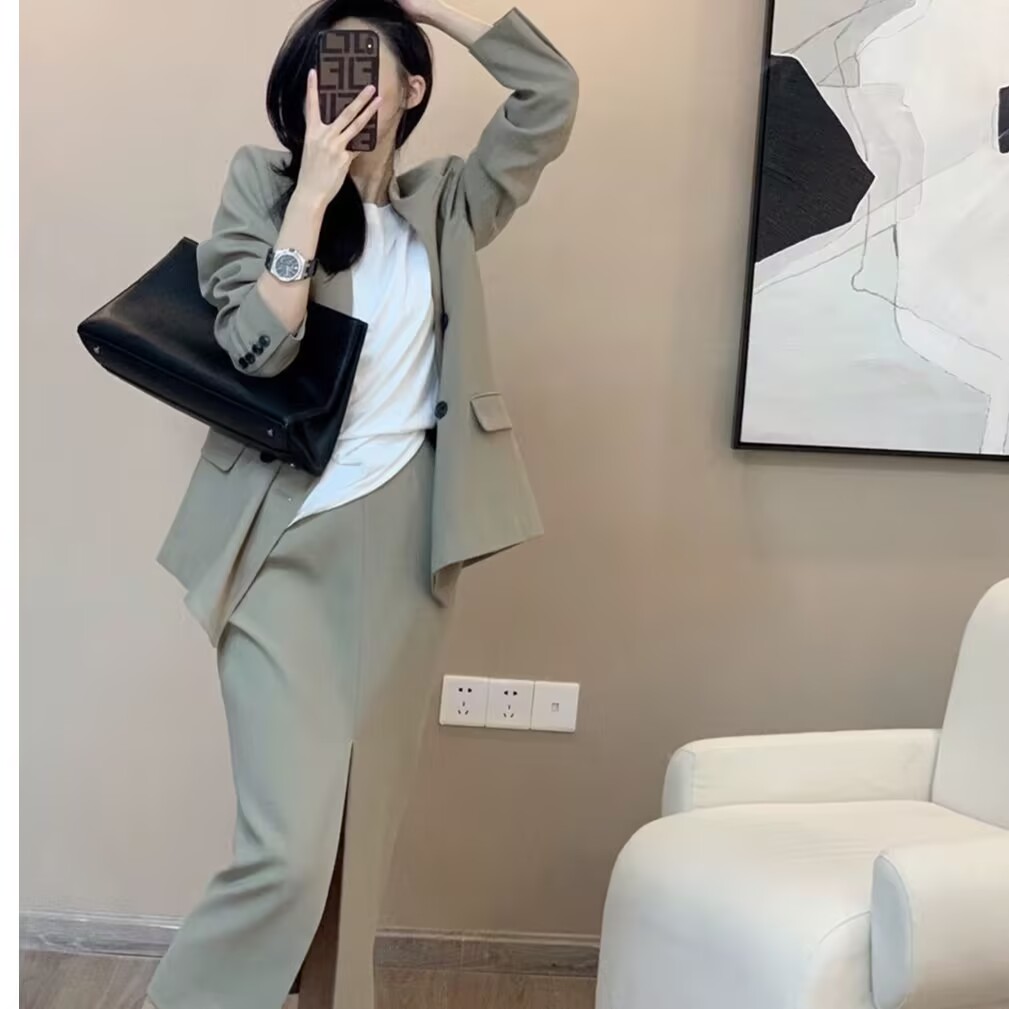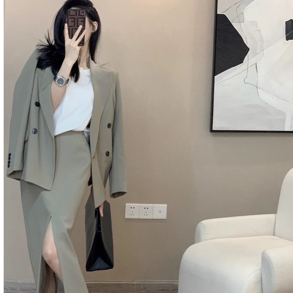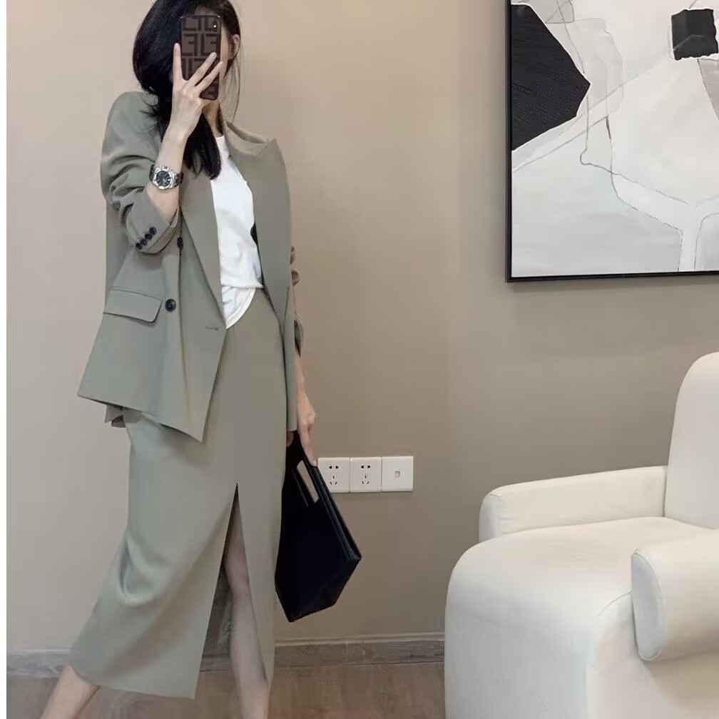 2025春夏新款轻奢港风chic时尚职业西装小众显瘦半身裙两件套装女