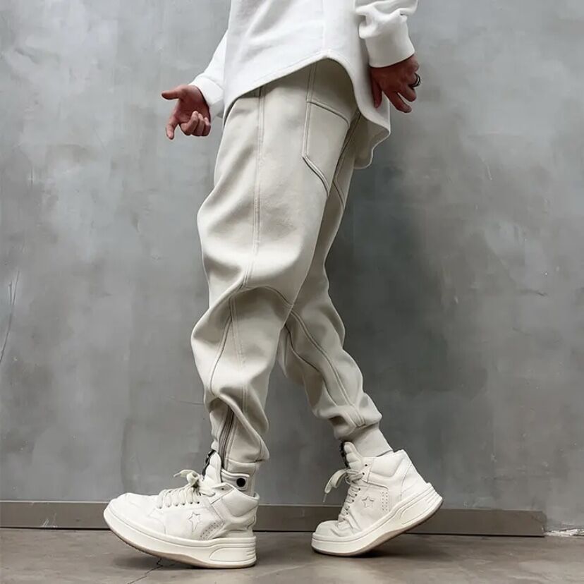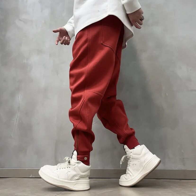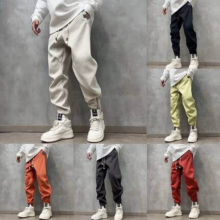 春秋男士加绒加厚潮牌刺绣运动卫裤时尚百搭裤脚拉链束脚哈伦长裤