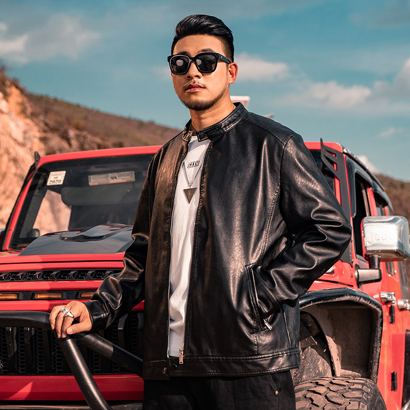 GxxH大码男装潮牌加肥加大皮衣外套潮胖子宽松长袖防风夹克机车服