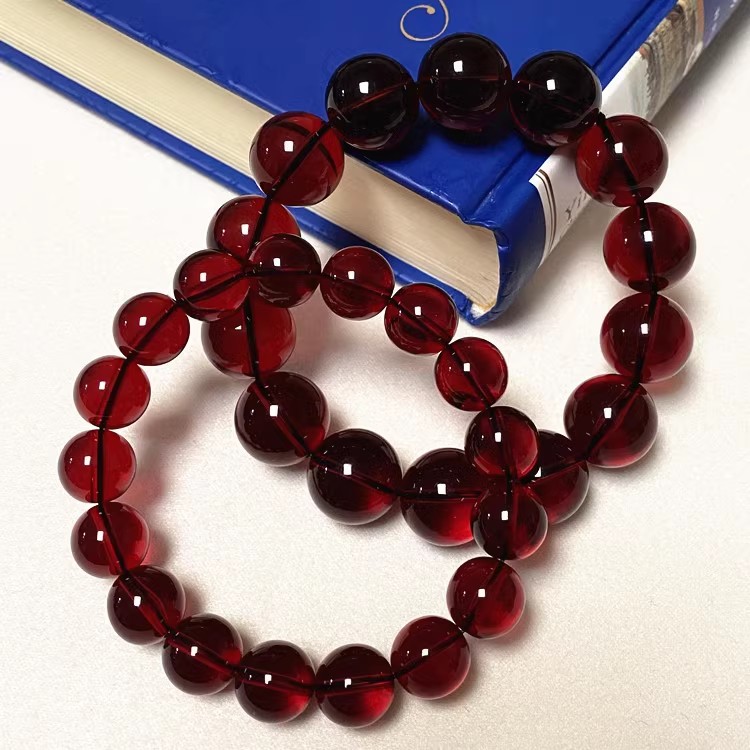 正品天然血珀手串男女款缅甸琥珀净水本命年手链酒红色保真配证书