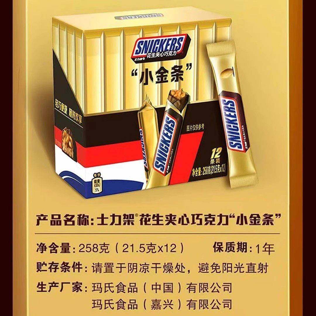 Snickers/士力架新款小金条258g盒装21.5*12花生夹心(代可可脂)
