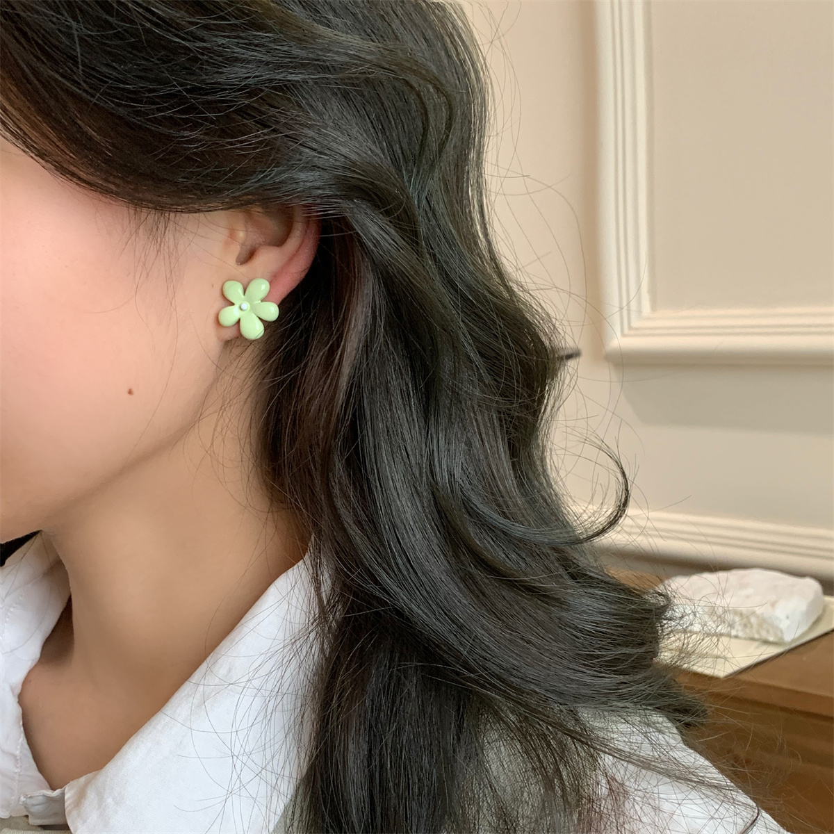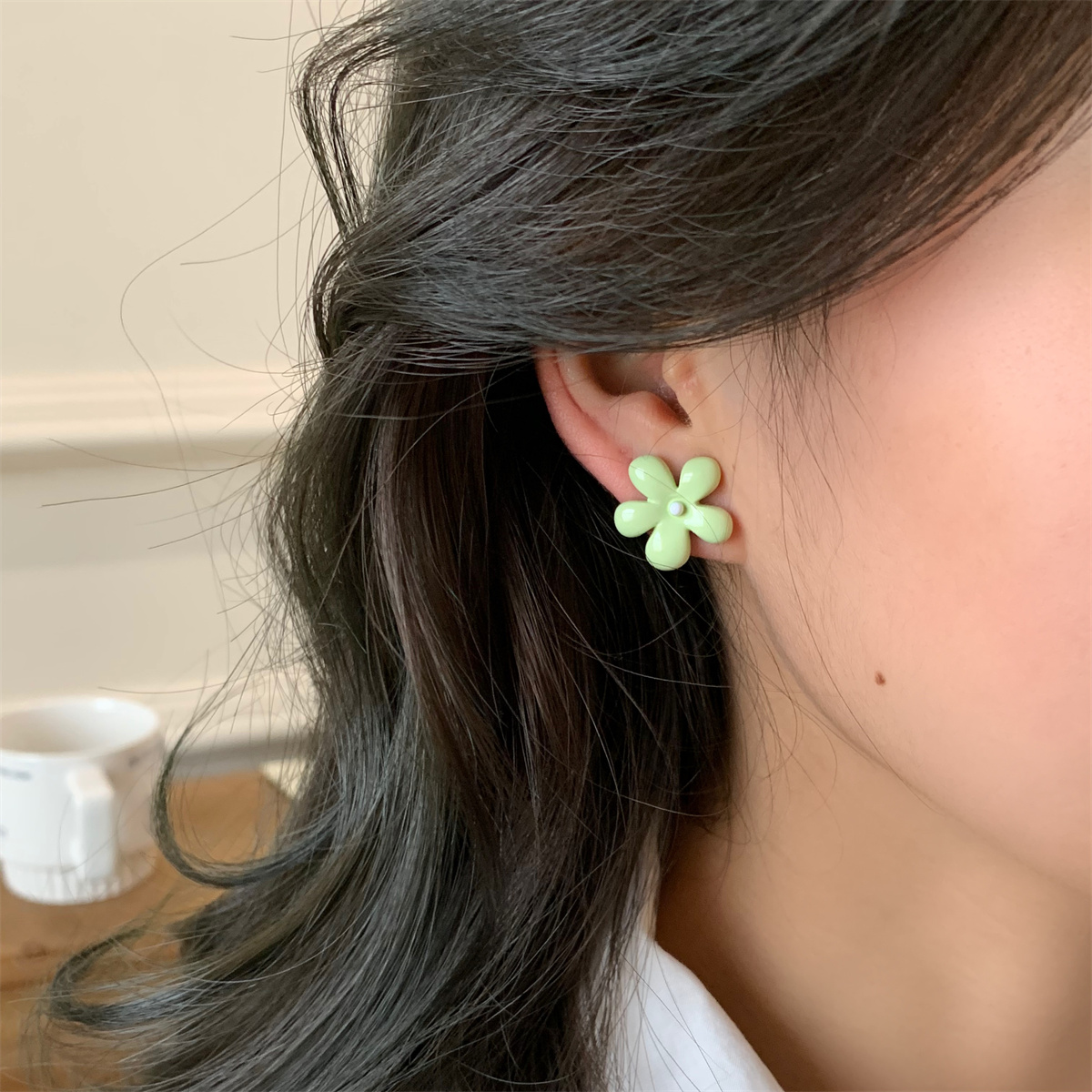 韩国小清新撞色精致甜美小花耳钉2025新款不对称少女心耳饰耳环女