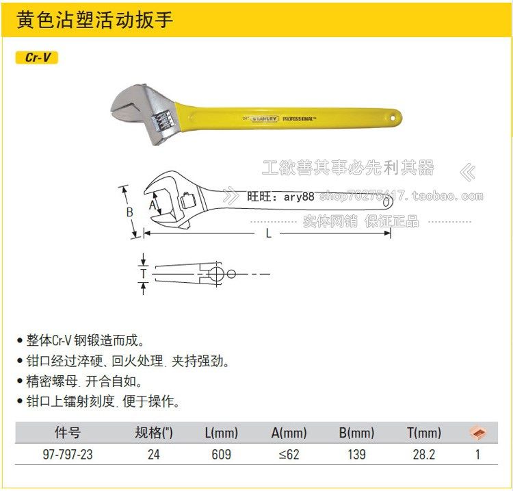 STANLEY/史丹利sd 黄色沾塑活动扳手24寸/600mm 97-797-23 维修工