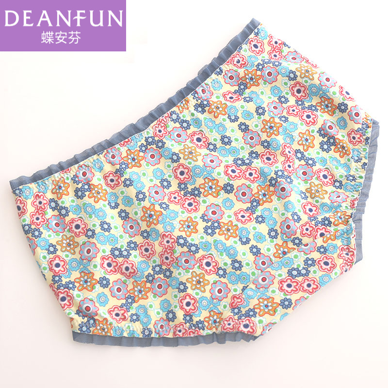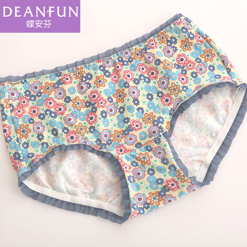 蝶安芬女士内裤中腰印花无痕网纱边纯棉裆女式舒适透气三角短裤女