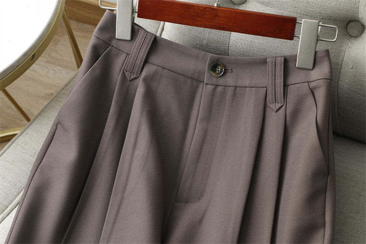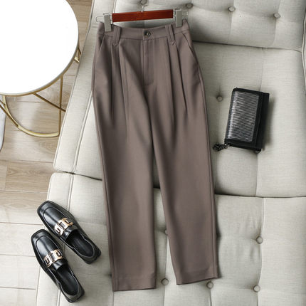 腔调感通勤~打褶设计垂坠显瘦咖色休闲9分微哈伦裤锥形裤西裤女春