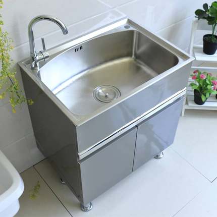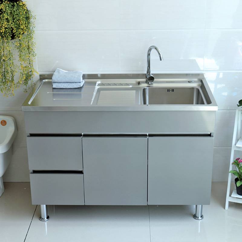 不锈钢洗衣柜阳台家用洗衣池单柜洗手台盆落地式浴室柜组合带搓板