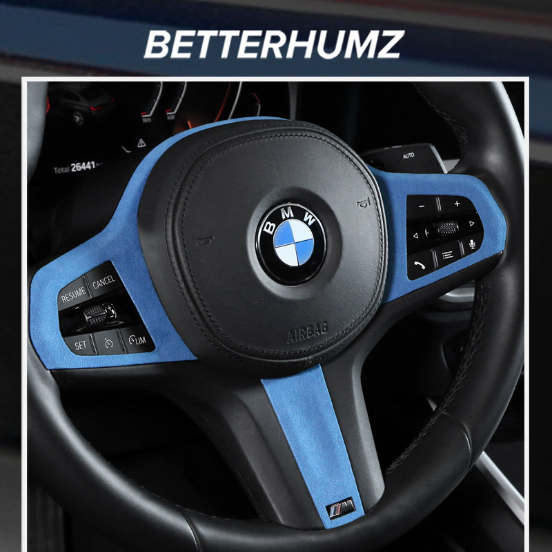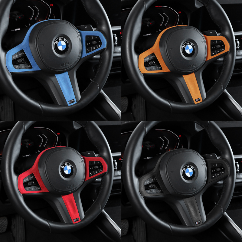 适用宝马新3系5系7系X3X5X6ix3改装翻毛皮方向盘装饰贴车内饰用品