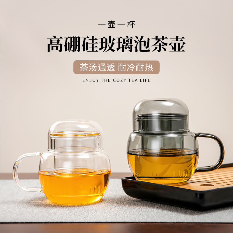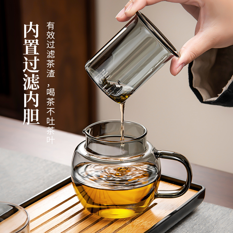 玻璃泡茶壶家用一人用耐高温茶水分离功夫茶具大容量饮水杯高硼硅