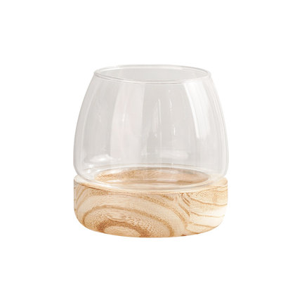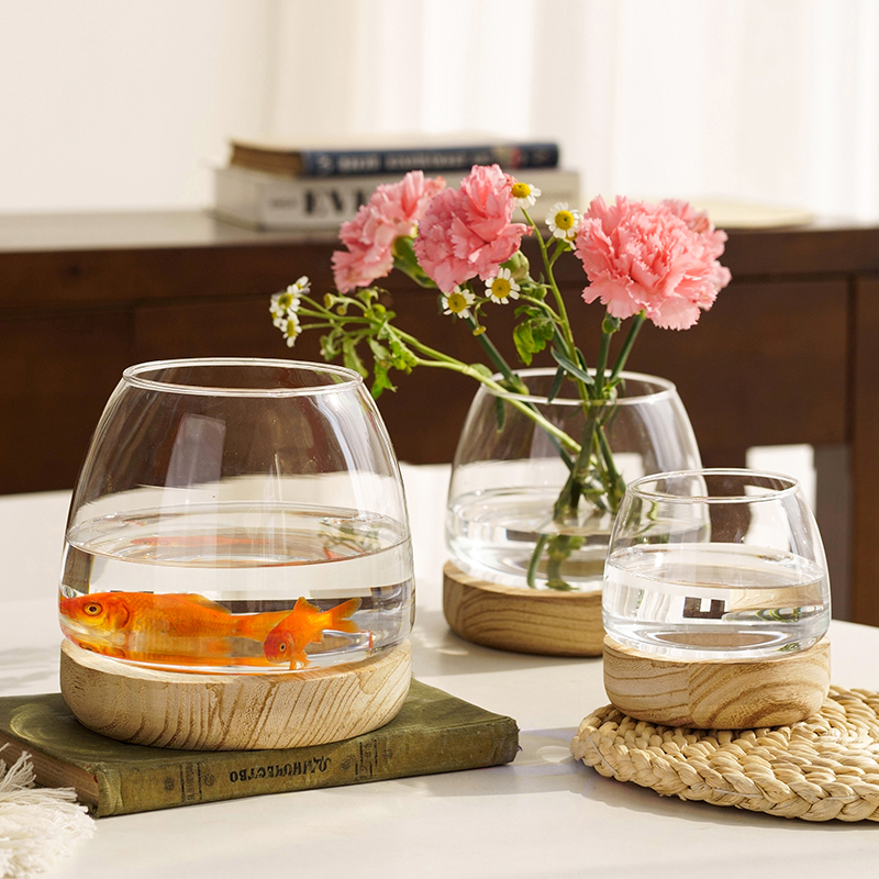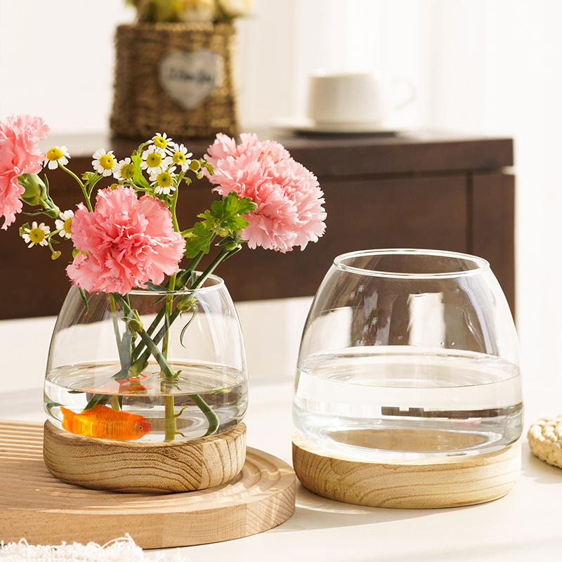 创意简约北欧风玻璃花瓶原木网红水培器皿鱼缸餐桌客厅插花装饰