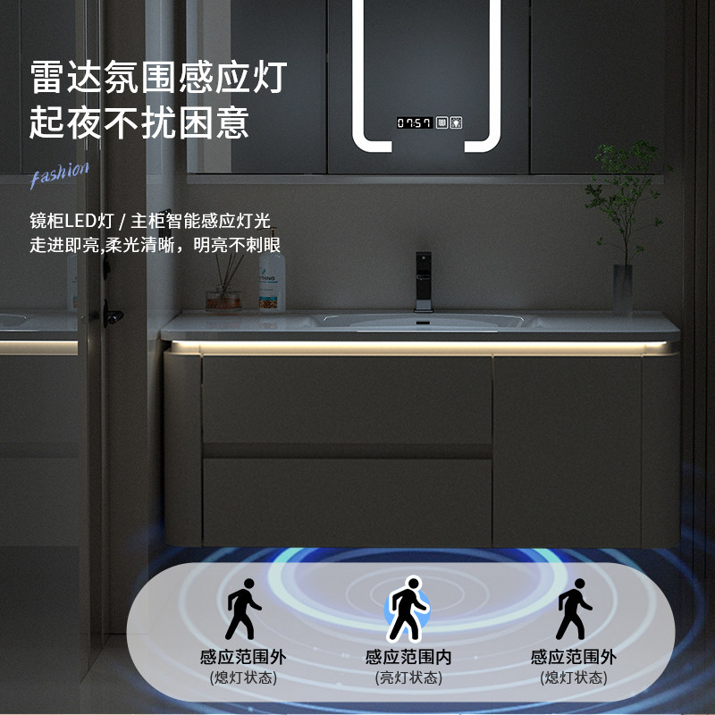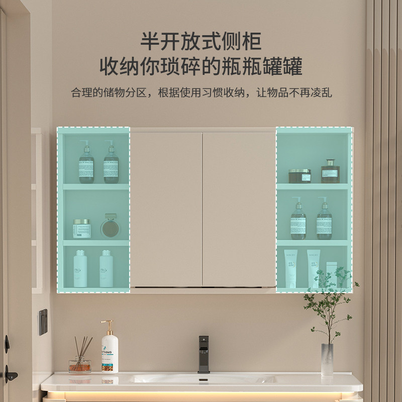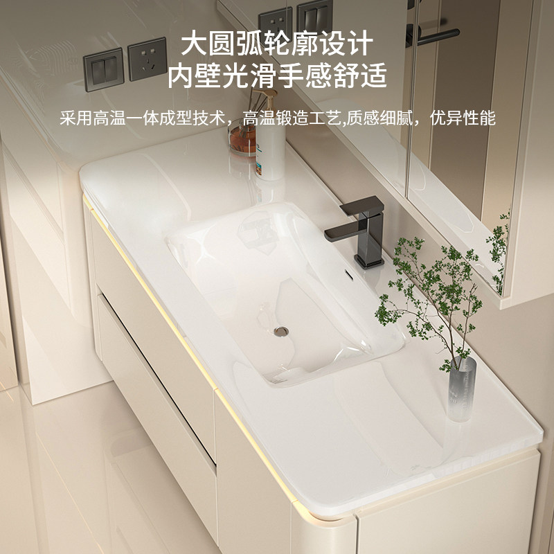 简约现代浴室柜风水镜组合卫生间洗手洗漱陶瓷一体盆智能镜柜组合