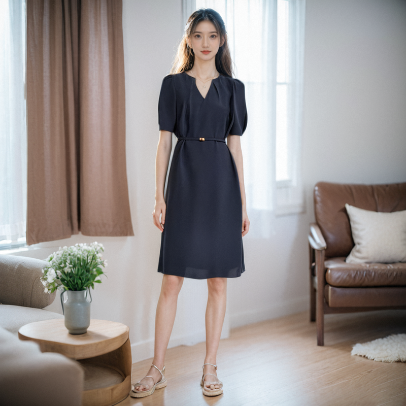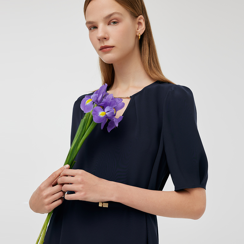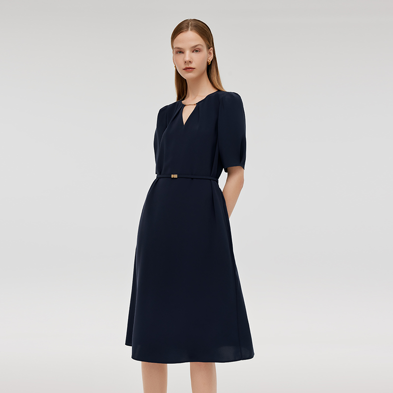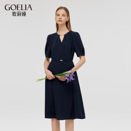 歌莉娅连衣裙女2024秋季新款气质绝美收腰高端醋酸裙子
