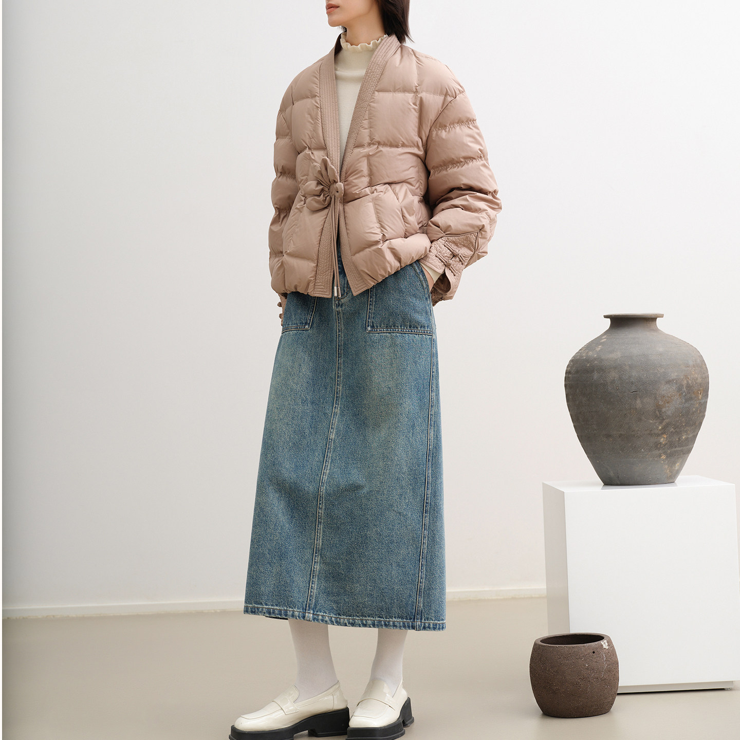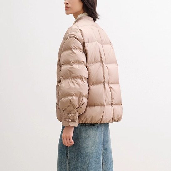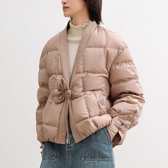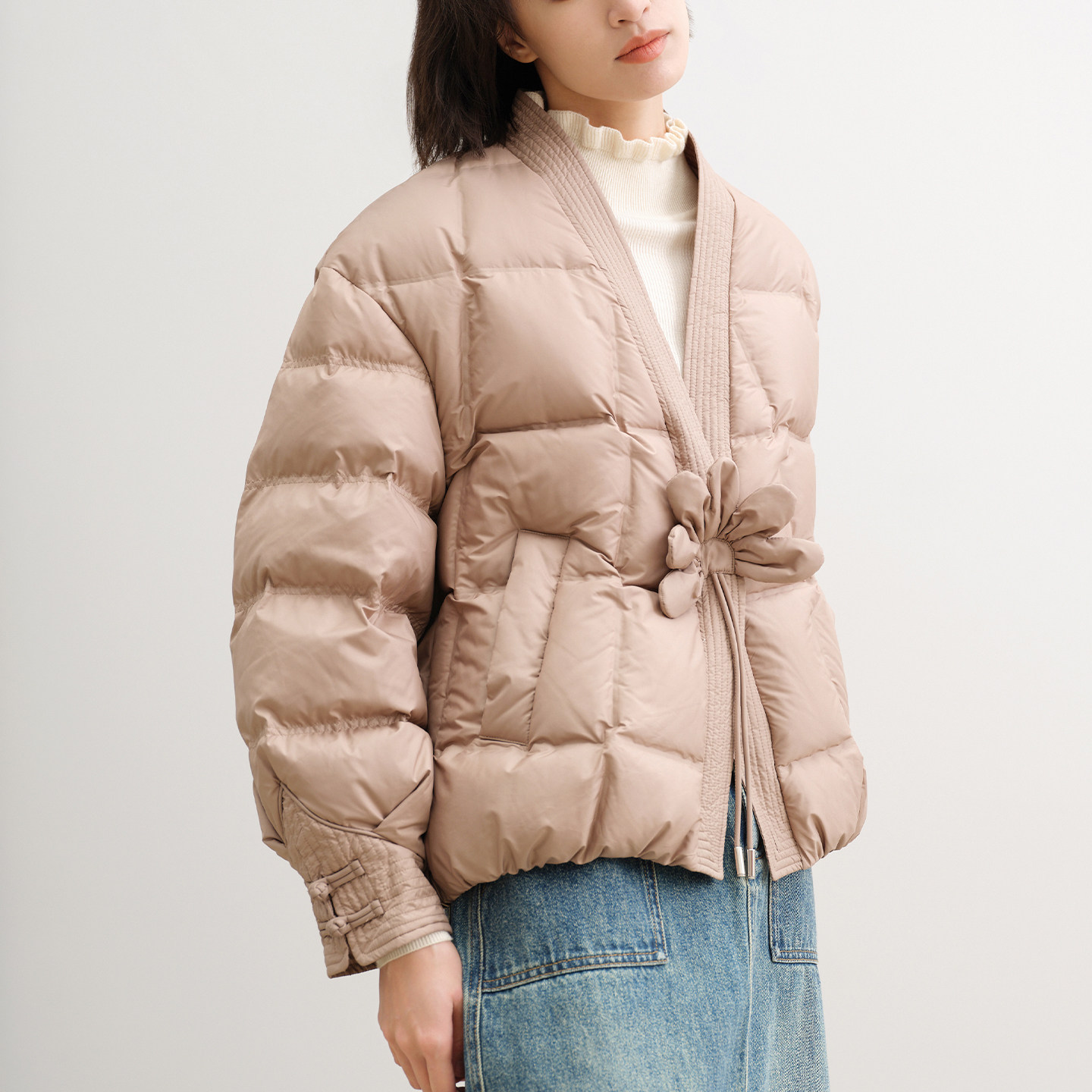 艺之卉量感暖核无领立体花装饰时尚减龄款短款羽绒服2025冬新款
