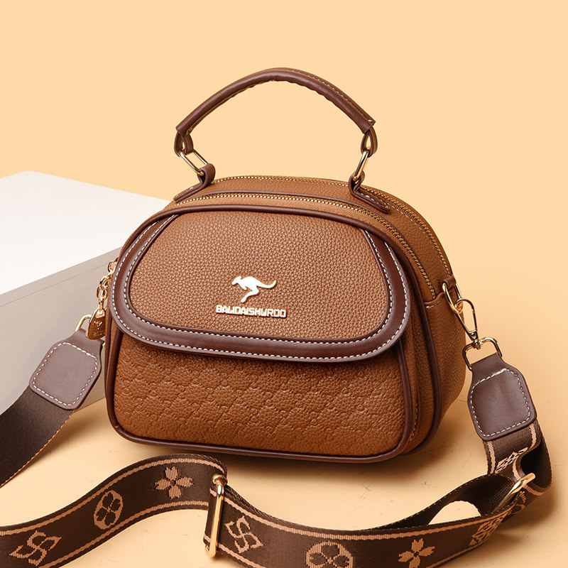 正品真皮女包2025新款牛皮单肩斜挎包时尚百搭中年妈妈包双层小包