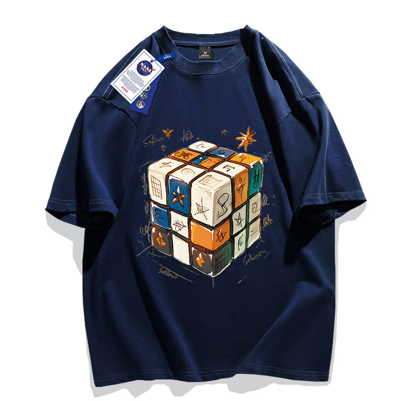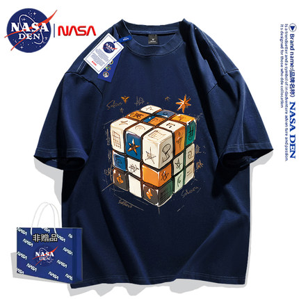NASA联名美式印花重磅纯棉短袖T恤男女款透气夏季宽松百搭五分袖