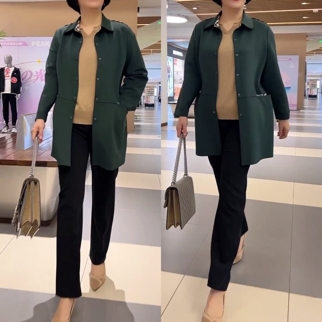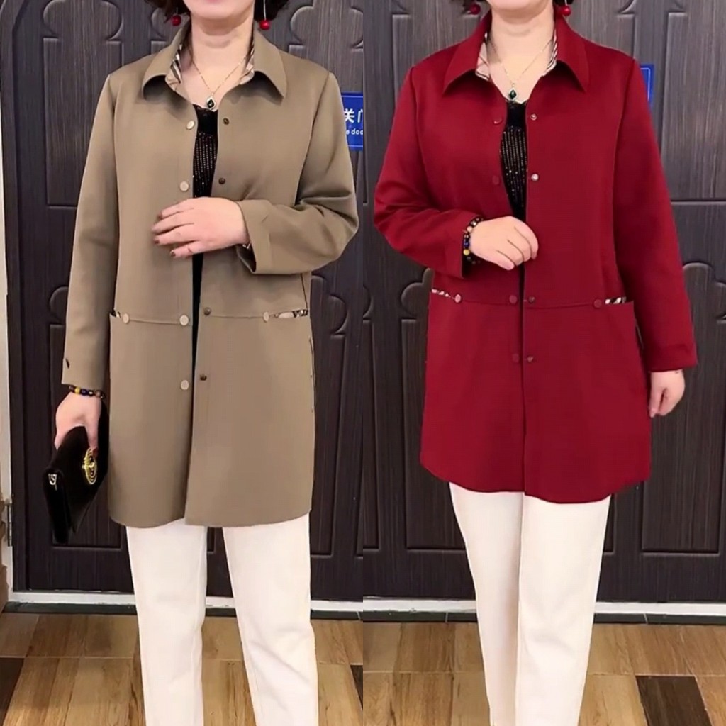 春秋新款时尚洋气外套中年显瘦上衣女装开衫中长款妈妈装休闲风衣