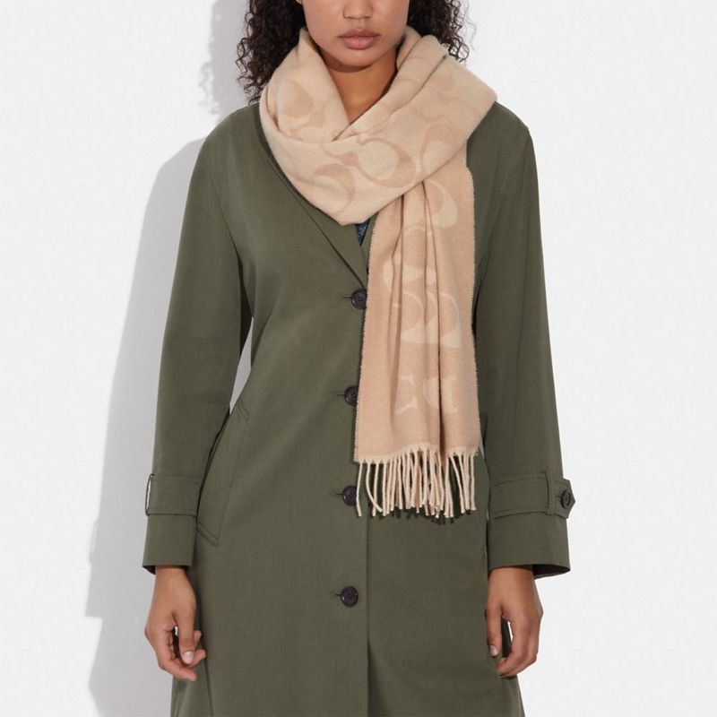 【店长推荐】COACH新款保暖女士长款羊毛羊绒流苏围巾围脖披肩