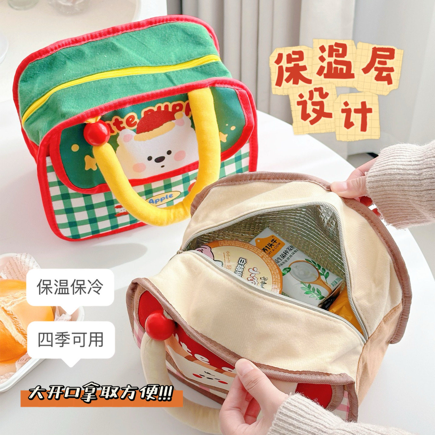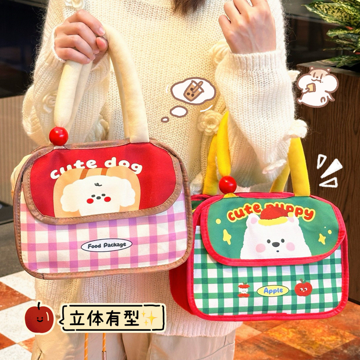 可爱小狗新款便当包保温袋女生大容量便携手提饭盒包加厚铝箔餐包