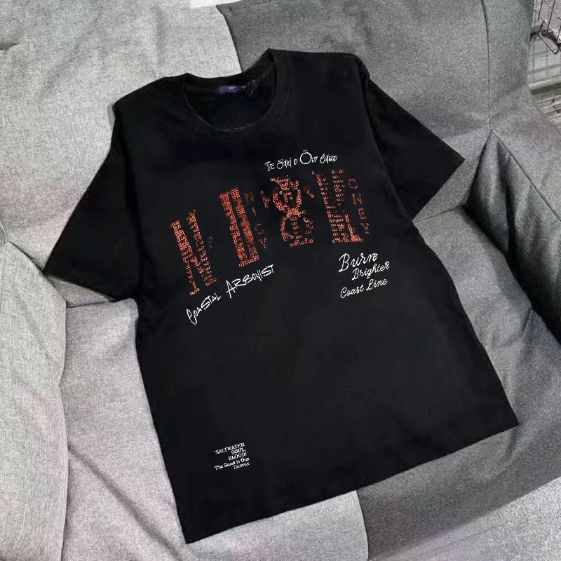 美式重磅纯棉设计感字母夏季短袖t恤潮牌宽松男女款情侣百搭半袖