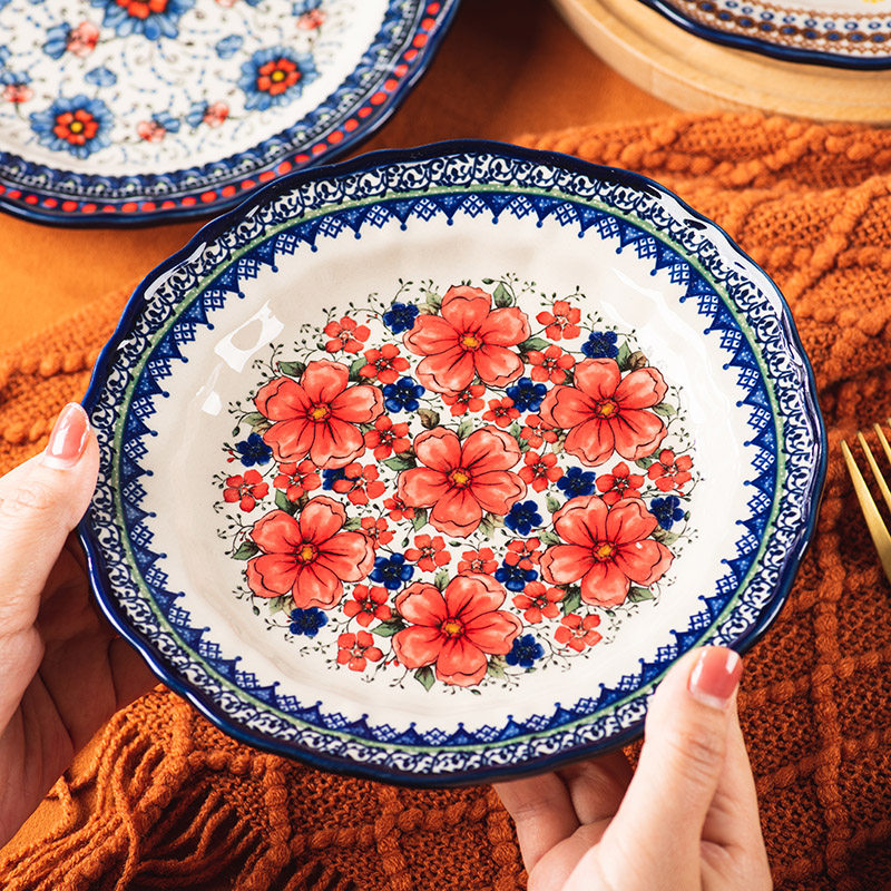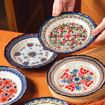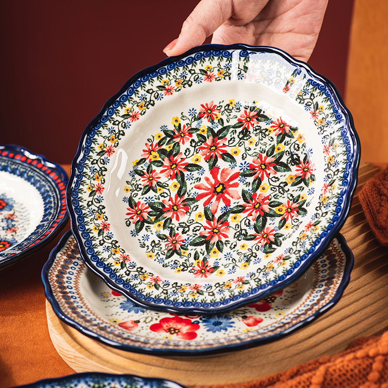 波兰盘子菜盘家用陶瓷复古餐具早餐盘饺子盘鱼盘餐盘水果盘深盘