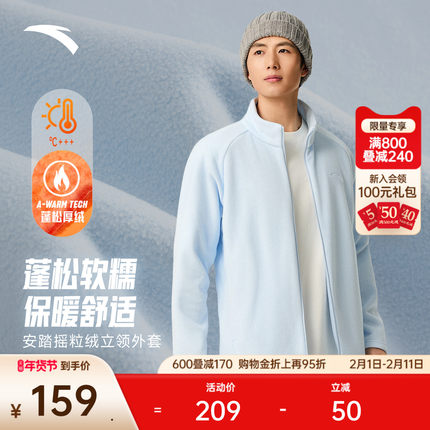 安踏摇粒保暖立领抓绒衣男女同款冬季新款运动外套冲锋衣内胆夹克