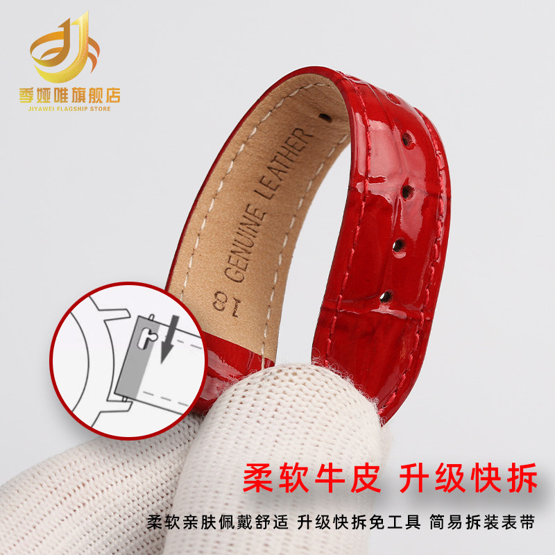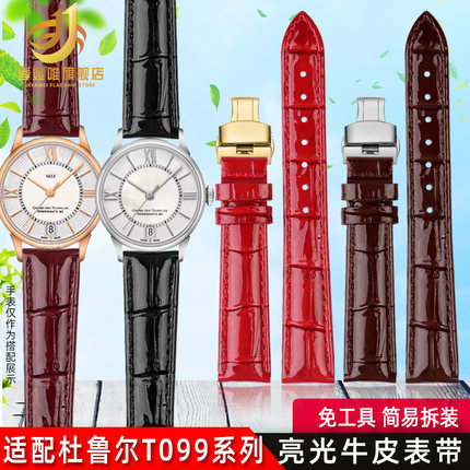 季娅唯适配天梭1853手表带真皮女T099杜鲁尔T099207A亮光牛皮表链