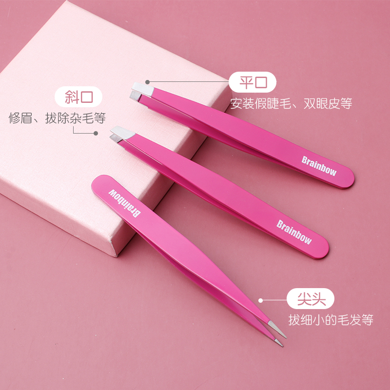 Brainbow镊子拔毛拔胡子男平口斜口修眉夹小眉夹拔胡子假睫毛眉夹
