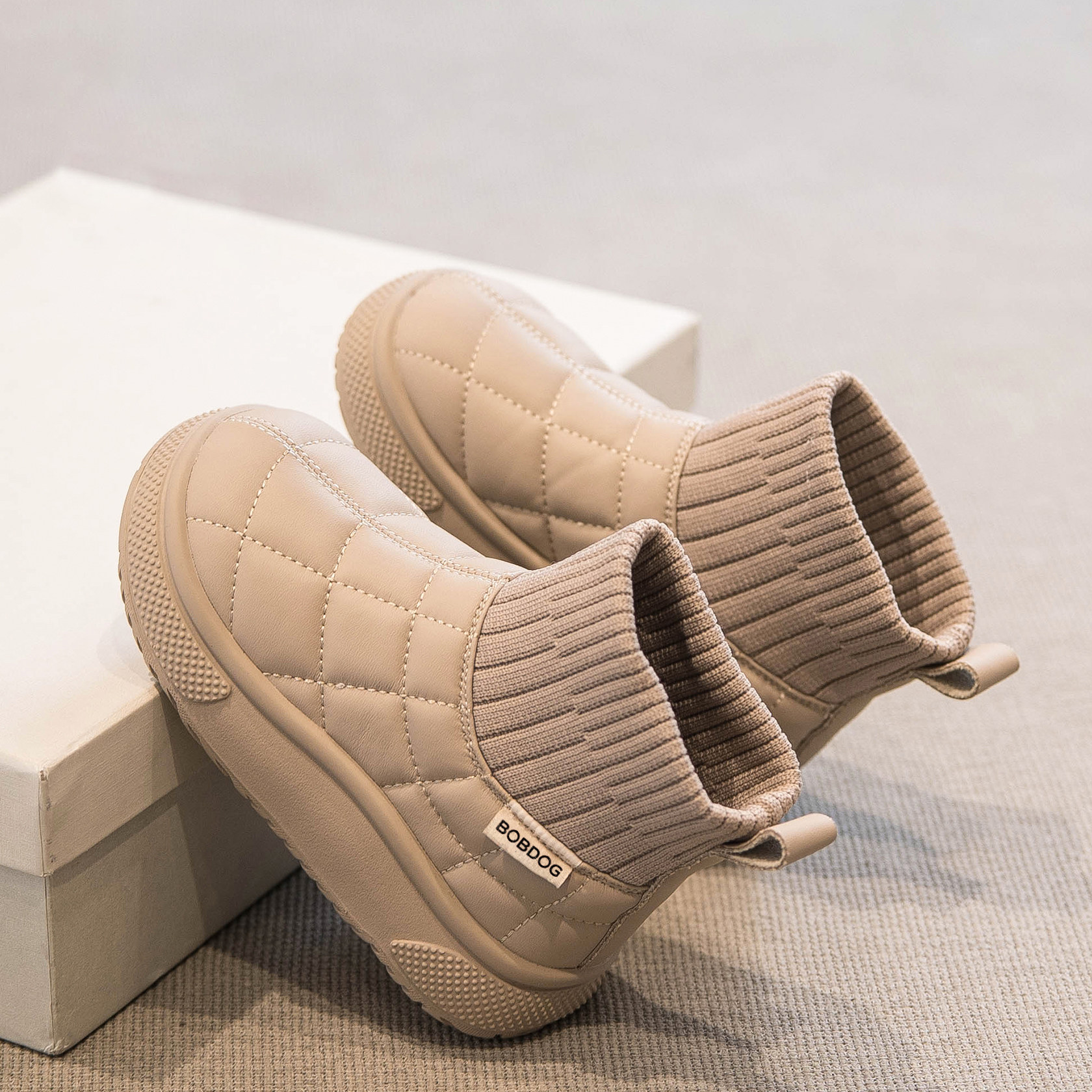 巴布豆真皮女童雪地靴儿童加绒靴子2025冬季防水男童棉鞋保暖短靴