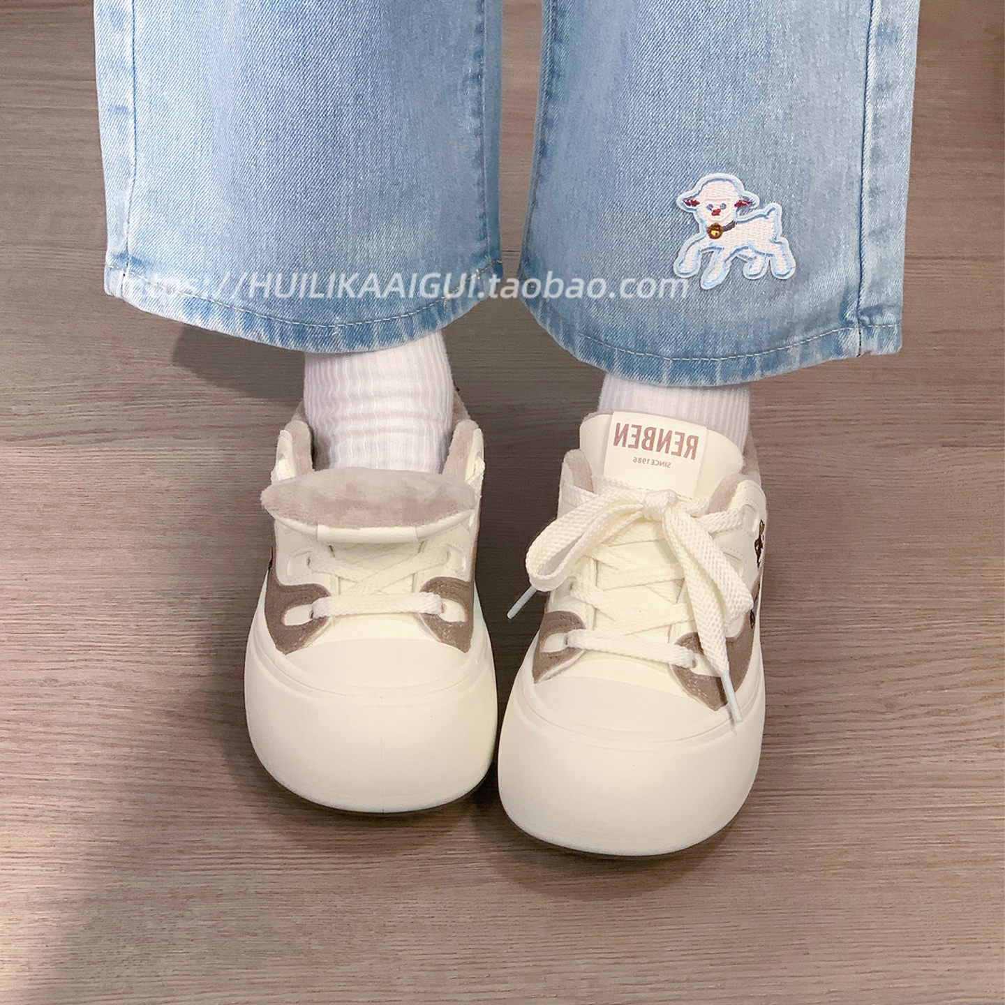 人本美拉德加绒大头鞋女冬季新款学生百搭二棉鞋子小众可爱小白鞋