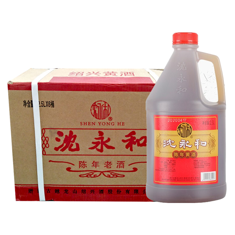 正宗绍兴黄酒古越龙山沈永和陈年老酒糯米酒半干型2.5L*6桶装整箱