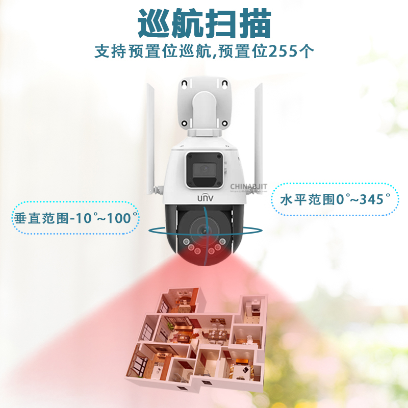 宇视监控双摄球机无线wifi高清夜视全彩枪球联动360度变焦手机看