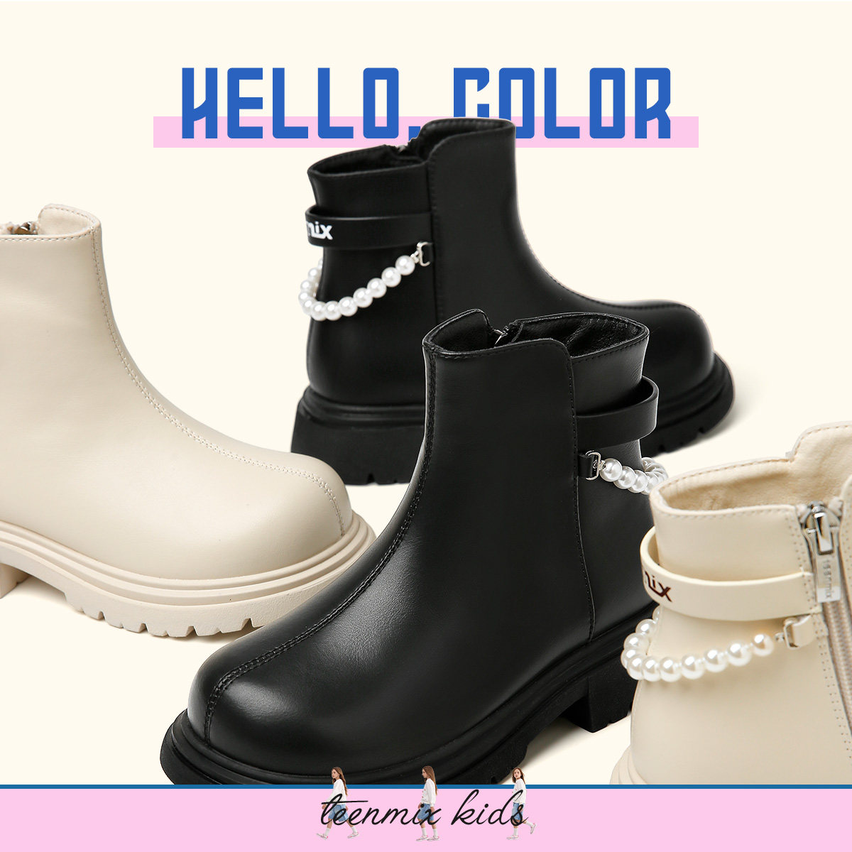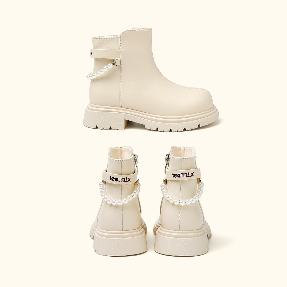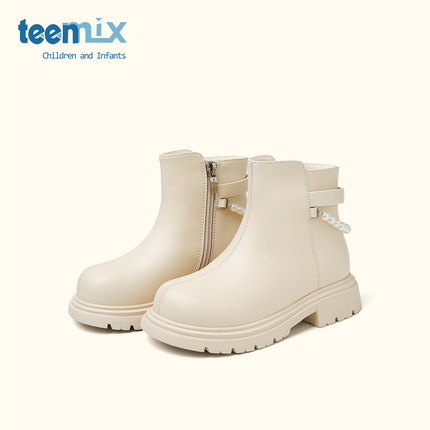 天美意童鞋2025年秋冬新款女童简约百搭公主短靴小女孩加绒马丁靴