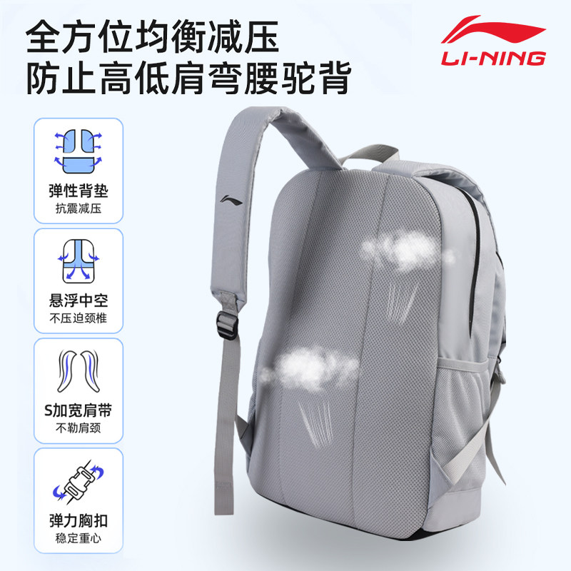 李宁双肩包初中生书包