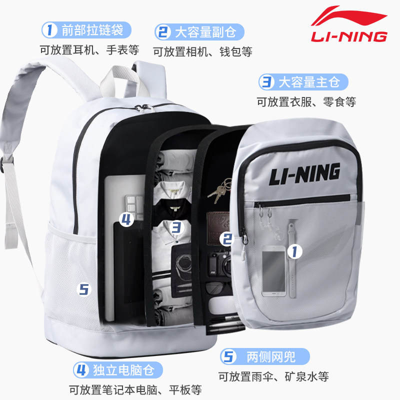 李宁双肩包初中生书包女士户外旅行大容量男运动休闲登山背包新款