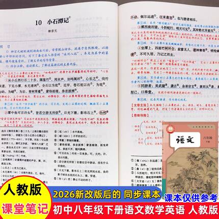 八年级上下册学霸课堂笔记语文数学英语全套人教部编版2026春新版同步新课本教材全解初中二上下预习复习随堂笔记书初中教辅正版