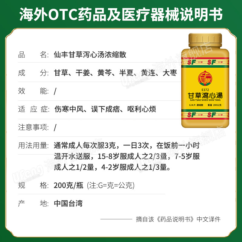台湾仙丰中药E372甘草泻心汤汉方倪海厦伤寒中风误下成痞呕利心烦