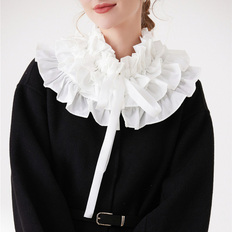 层叠压褶木耳边假领子复古宫廷荷叶边立领系带装饰斗篷百搭假衣领