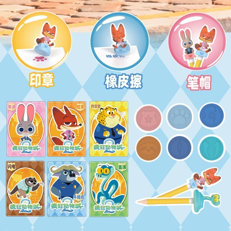 正版迪士尼疯狂动物城印章橡皮电影明盒周边兔朱迪尼克狐手办文具