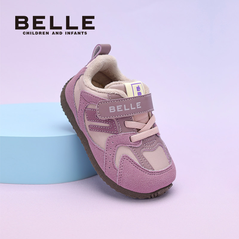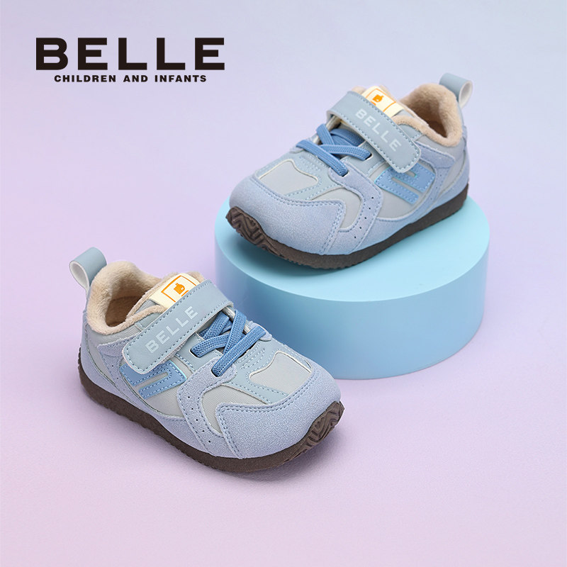 百丽童鞋2025冬新款男女童运动鞋百搭轻便薄底棉鞋加绒保暖休闲鞋