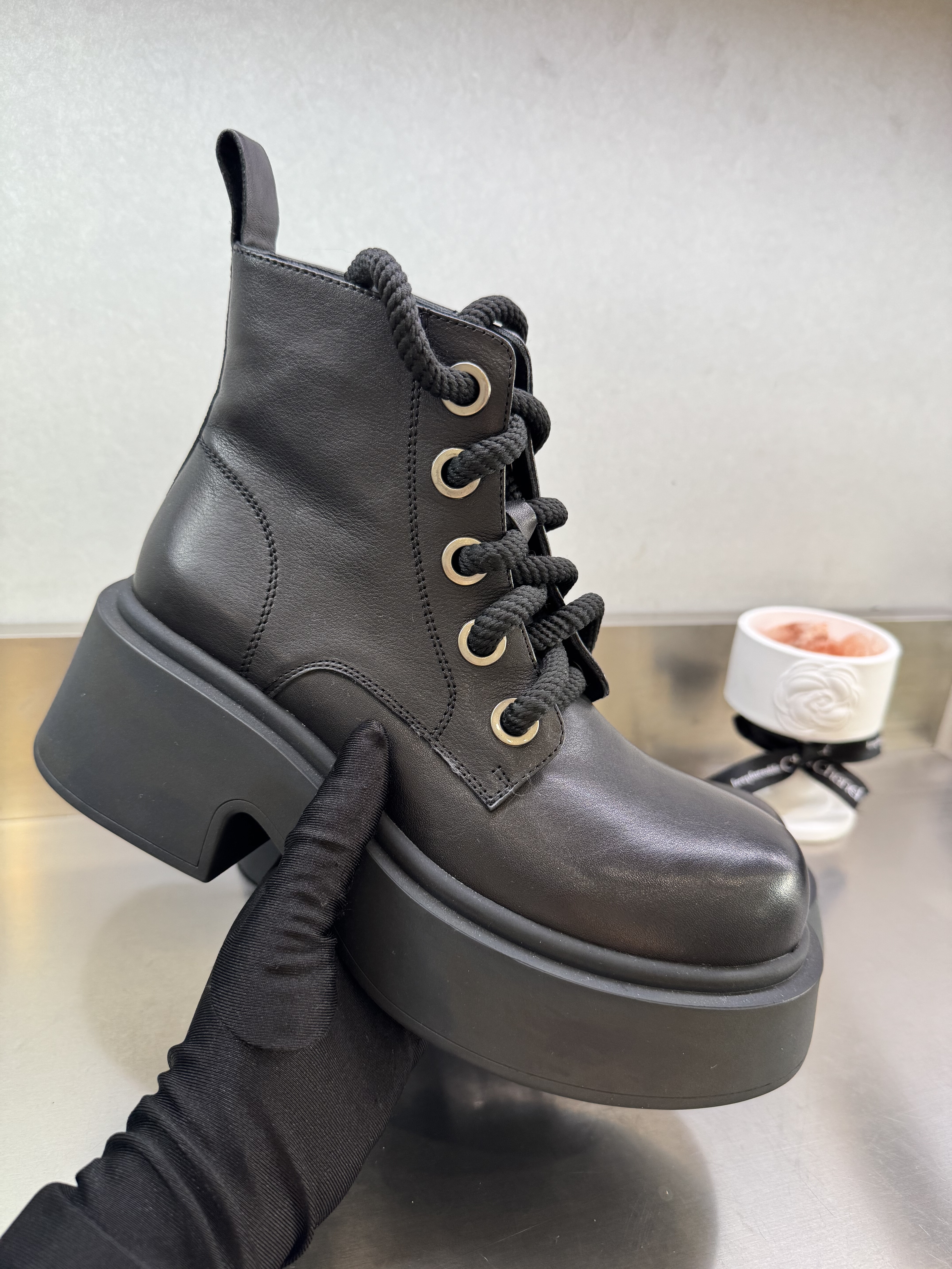 2025年新款日系带深口真皮靴子短靴女轻便厚底马丁靴系带短靴