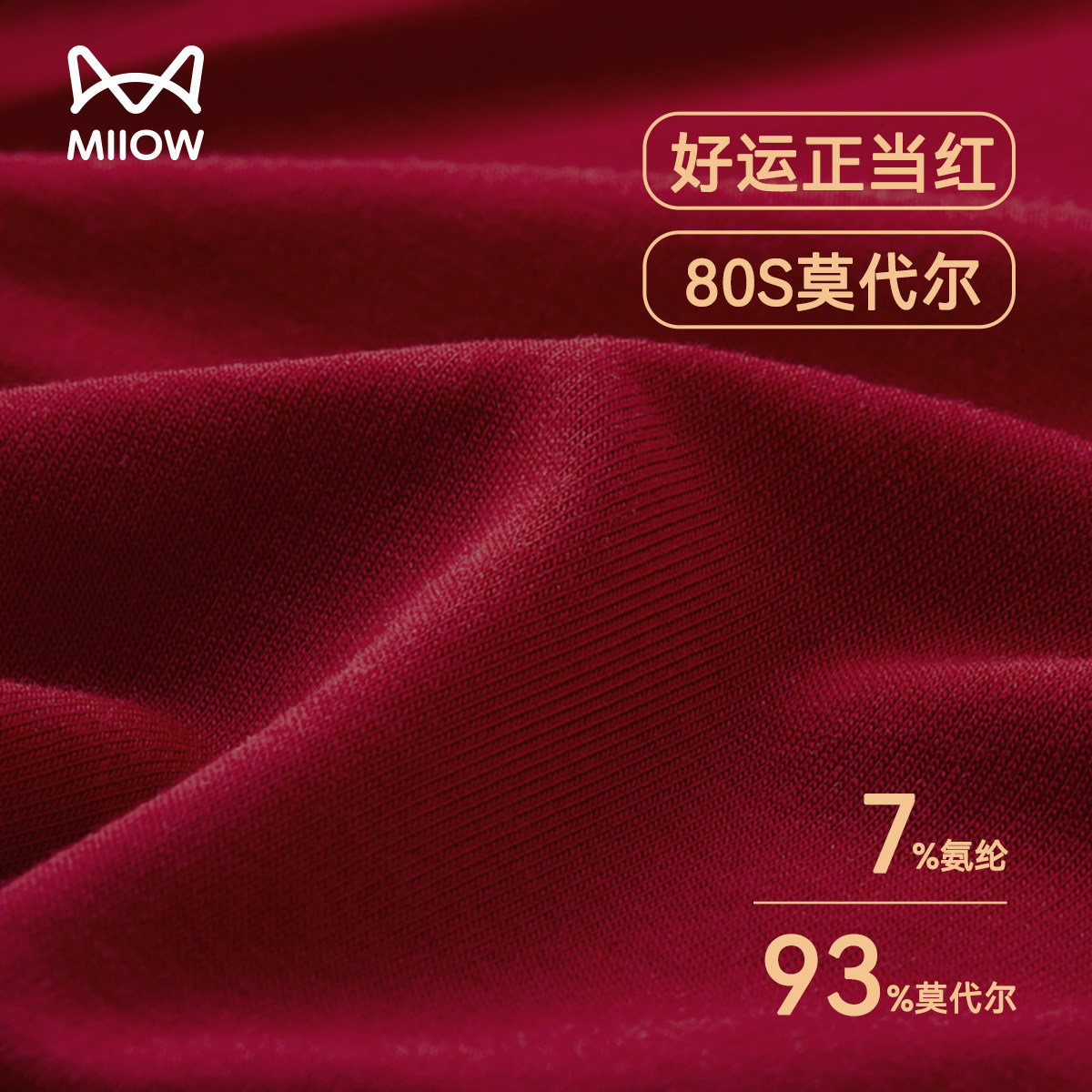 MiiOW/猫人酒红色男士内裤莫代尔透气平角四角底裤结婚本命年短裤