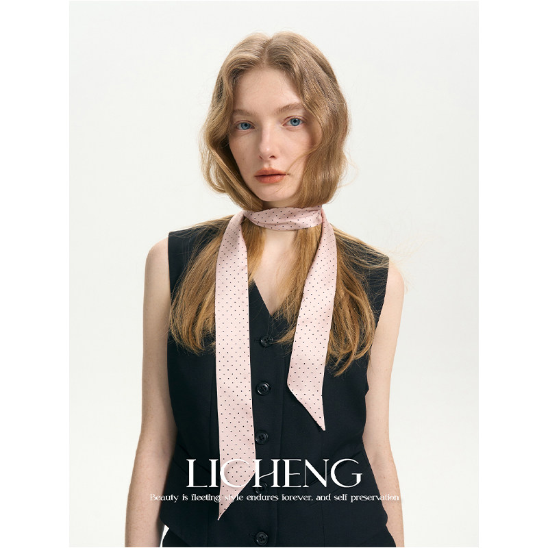 礼诚原创 100%真丝香槟粉波点长丝巾女高级感装饰发带桑蚕丝飘带