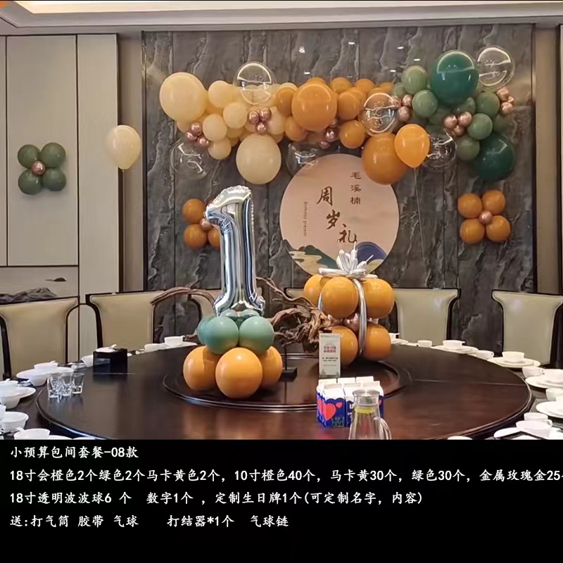 宝宝一周岁宴酒店饭店包厢生日布置气球抓周装饰场景男女孩背景墙