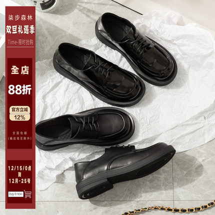 柒步森林平底日系真皮英伦风学院舒适小皮鞋黑色单鞋子女春季新款