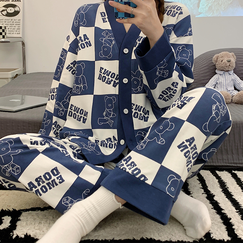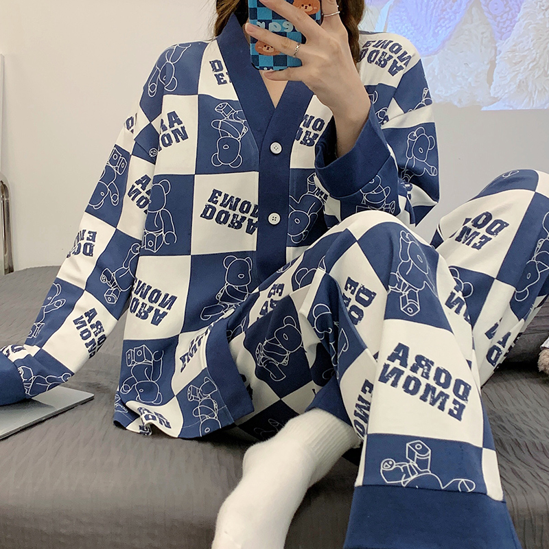 睡衣女款春秋季纯棉长袖和服学生大码套装夏天冬开衫家居服可外穿